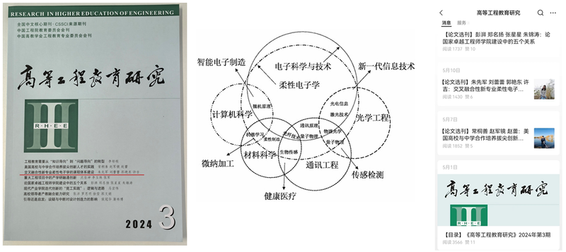 近日,我院朱先軍副教授、劉蕾蕾教授、郭艷東副教授和許吉副教授等人,在國內(nèi)工程教育研究權(quán)威期刊《高等工程教育研究》上發(fā)表題為《交叉融合性新專業(yè)柔性電子學(xué)的課程體系建設(shè)》的教學(xué)改革研究論文。論文闡述了柔性電子學(xué)專業(yè)多學(xué)科交叉融合性的特點(diǎn),著重介紹了我院在面向交叉融合的前沿學(xué)科需求,以學(xué)生為中心,以產(chǎn)業(yè)需求為導(dǎo)向、突出多學(xué)科交叉融合的特點(diǎn)、引入前沿技術(shù)進(jìn)行柔性電子人才培養(yǎng)的課程體系構(gòu)建和優(yōu)化的思路,重點(diǎn)介紹了專業(yè)核心課程的特色和實(shí)踐教學(xué)環(huán)節(jié)設(shè)置,詳細(xì)介紹了傳統(tǒng)課程融合交叉學(xué)科特色的教學(xué)內(nèi)容改革。柔性電子學(xué)是面向國家重大戰(zhàn)略需求的跨學(xué)科交叉融合領(lǐng)域設(shè)立的新專業(yè),我校于2021年向教育部申報(bào)設(shè)立柔性電子學(xué)專業(yè)并成功獲批,于2022年9月招收第一屆本科生。我院柔性電子學(xué)專業(yè)師資隊(duì)伍建設(shè)、課程體系建設(shè)和學(xué)科發(fā)展等如火如荼的開展,并取得了良好實(shí)效。柔性電子學(xué)專業(yè)課程體系建設(shè)相關(guān)研究受到了《高等工程教育研究》期刊編委的青睞,刊發(fā)在2024年第3期“新工科研究與實(shí)踐”專欄,并作為選文在其公眾號(hào)上推廣,受到了國內(nèi)高等教育界學(xué)者們關(guān)注。該教學(xué)研究成果得到南京郵電大學(xué)本科教改項(xiàng)目和江蘇省高等教育教學(xué)改革研究項(xiàng)目