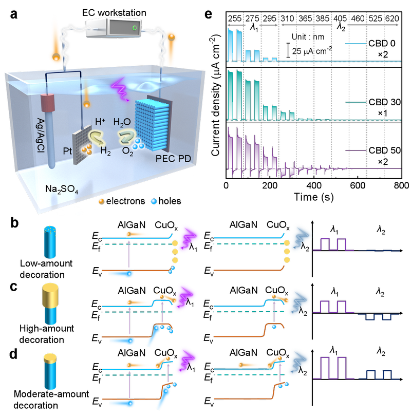 近日,我院GaN-X Lab課題組在氮化鎵基紫光探測領(lǐng)域取得重要研究進(jìn)展,通過構(gòu)建II型AlGaN/CuOx異質(zhì)結(jié),利用...