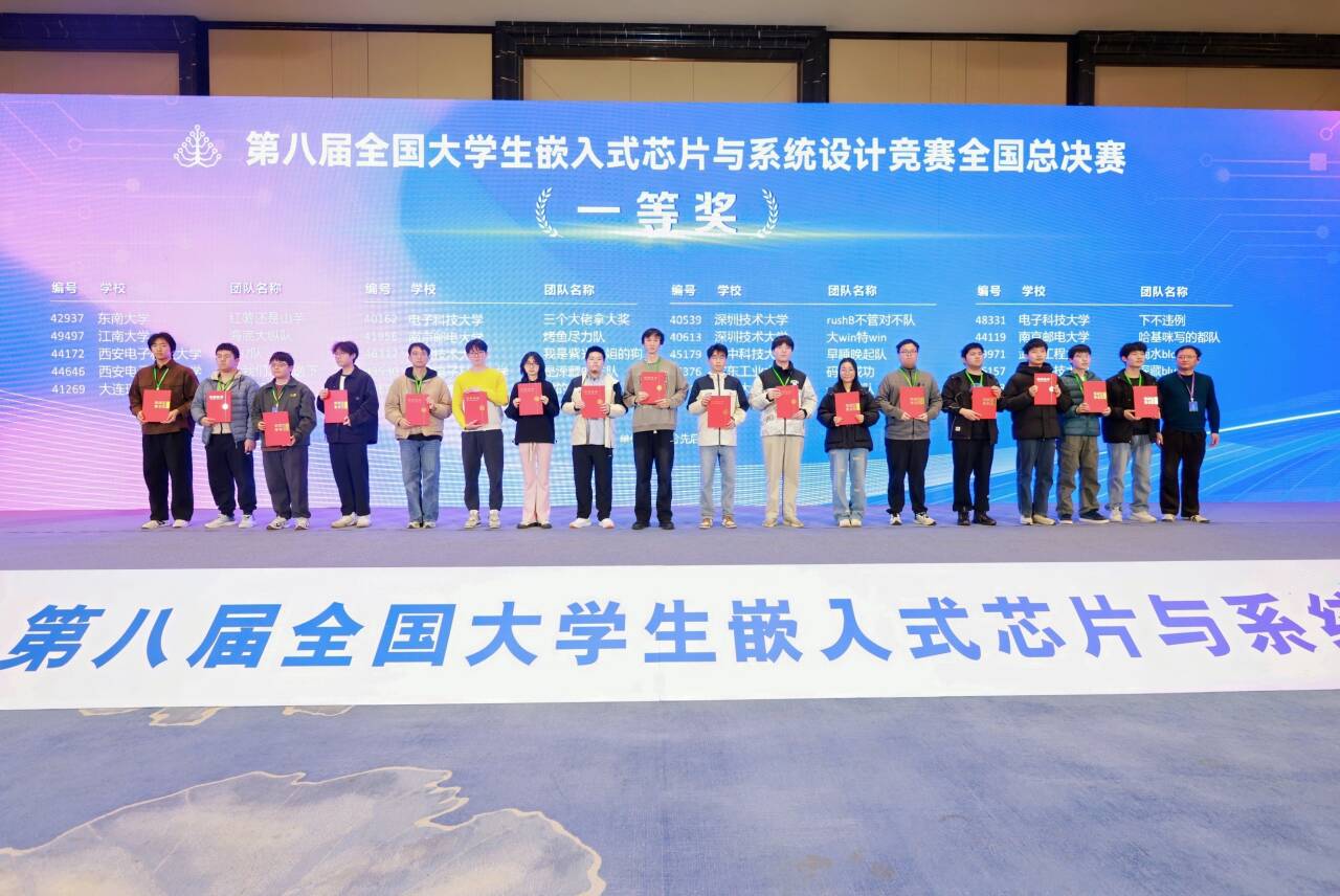 11月30日,2025年全國大學(xué)生嵌入式芯片與系統(tǒng)設(shè)計(jì)競賽-芯片設(shè)計(jì)賽道決賽與FPGA創(chuàng)新設(shè)計(jì)賽道決賽在南京落下帷幕。南京郵電大學(xué)參賽隊(duì)獲全國一等獎(jiǎng)8項(xiàng)(芯片設(shè)計(jì)賽道1項(xiàng),F(xiàn)PGA賽道7項(xiàng)),國家一等獎(jiǎng)數(shù)位列全國高校第二名、其中我院學(xué)生獲得國家一等獎(jiǎng)4項(xiàng),國家二等獎(jiǎng)4項(xiàng),國家三等獎(jiǎng)5項(xiàng)。FPGA創(chuàng)新設(shè)計(jì)大賽是全國嵌入式芯片與系統(tǒng)設(shè)計(jì)競賽三個(gè)專項(xiàng)賽之一,全國大學(xué)生嵌入式芯片與系統(tǒng)設(shè)計(jì)競賽由中國電子教育學(xué)會(huì)主辦,旨在提高全國高校學(xué)生在嵌入式芯片及系統(tǒng)設(shè)計(jì)領(lǐng)域、可編程邏輯器件應(yīng)用領(lǐng)域自主創(chuàng)新設(shè)計(jì)與工程實(shí)踐能力,培養(yǎng)具有創(chuàng)新思維、具備解決復(fù)雜工程問題能力且擁有團(tuán)隊(duì)合作精神的優(yōu)秀人才。序號(hào)學(xué)生姓名學(xué)號(hào)獲獎(jiǎng)等級指導(dǎo)老師1于沛田B24021509國家一等獎(jiǎng)郝學(xué)元、黃麗亞陶宸涵B240200282曹聞達(dá)B23020525國家一等獎(jiǎng)郝學(xué)元、諶靜李澤B230200183陳奕帆B23090625國家一等獎(jiǎng)郝學(xué)元、崔國印季子超B240208204胡鑫媛B23020503國家一等獎(jiǎng)謝祖帥、郝學(xué)元王譯B23021409(撰稿:郝學(xué)元 編輯:徐偉 審核:諶靜)